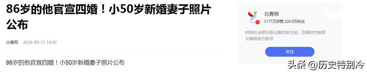 新派旧事:2025-08-16,《86岁的他官宣四婚!并且也是其正在外偷腥的出轨对象,还曾当过歌手、模特、演员等,